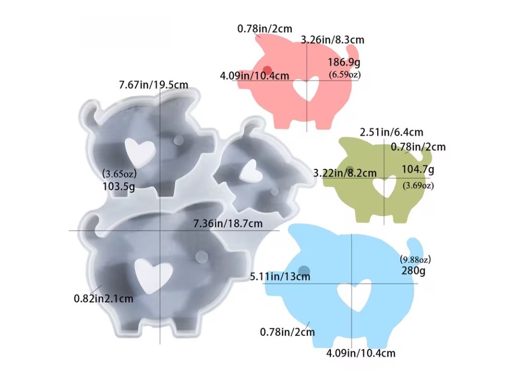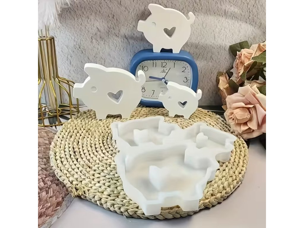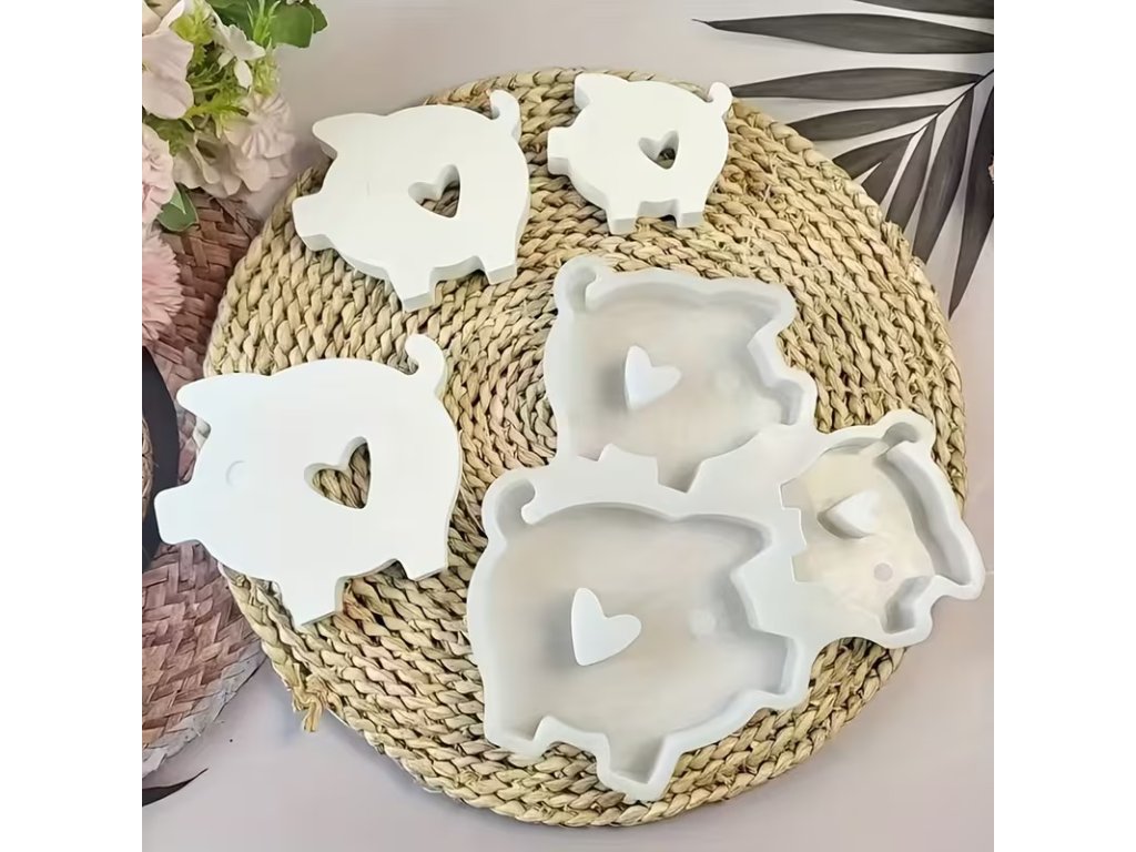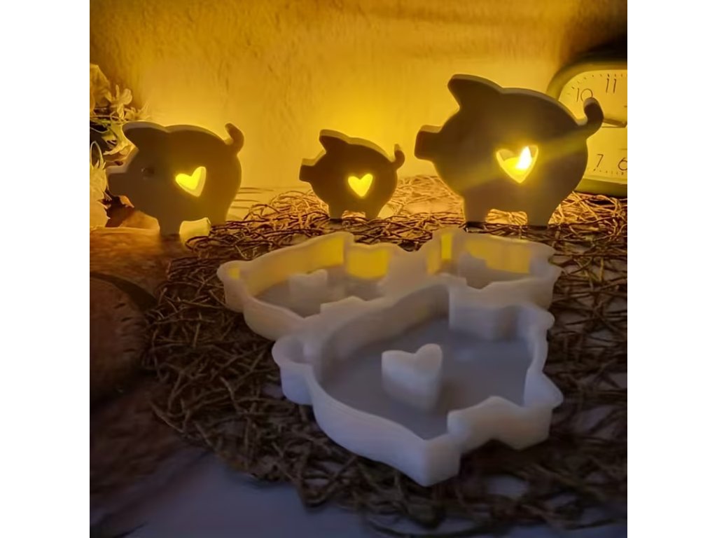 Praktická sada tří silikonových forem prasátek ve velikostech malé, střední a velké. Každá forma má uvnitř srdíčko, díky kterému vznikne krásná dekorace – ideální na světýlka, dárky i sezónní tvoření.