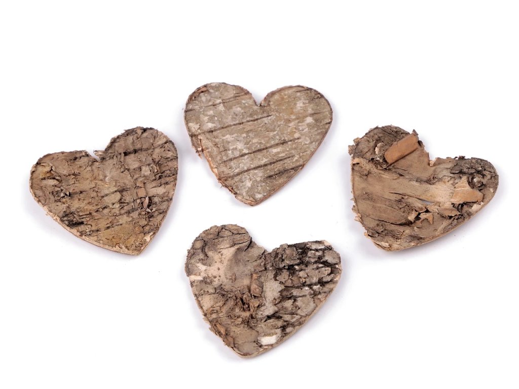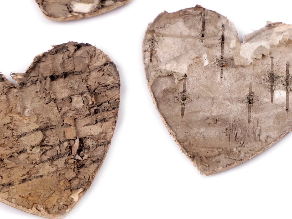 Srdíčka můžete použít k dozdobení věnců, truhlíků, květináčů, krabiček nebo dalších dekorací. Díky přírodnímu materiálu se jednotlivé kusy mohou lišit strukturou, odstínem i tloušťkou, což je jejich přirozená vlastnost a zároveň výhoda při tvorbě originálních dekorací.