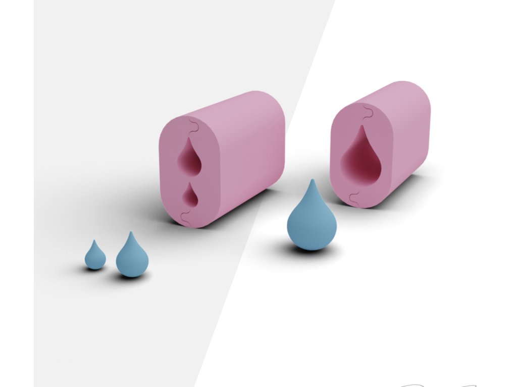 Vložte kousek hmoty do středu tvořítka, přiklopte druhou polovinu a pohybujte jimi proti sobě. Hmota se vytvaruje do přesného tvaru kapky. Množství hmoty lze podle potřeby upravit.