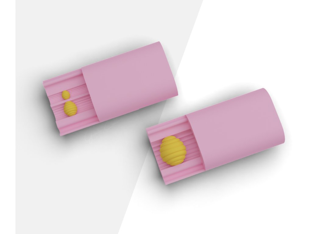 Vložte trochu hmoty do středu tvořítka, přiklopte druhou polovinu a jemně pohybujte proti sobě. Hmota se vytvaruje do požadovaného tvaru úlu. Množství hmoty upravte podle potřeby.